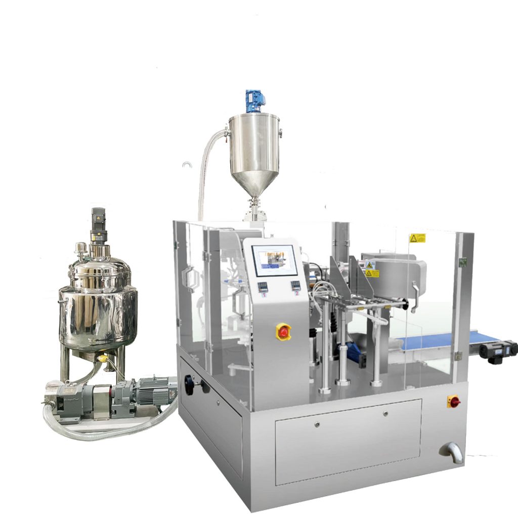 Ausgerüstet mit Kolbenfüller als das Dosiersystem, ist es weit verbreitet, verpackend Flüssigkeit und Paste, wie Reinigungsmittel, Weichmacher, Shampoo, Duschgel, Milch, Wasser, Saft, Sojasoße, Öl, Ketschup, Mayonnaise und so weiter.