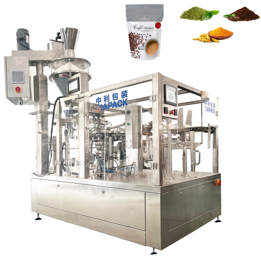 Rotationsbeutelverpackungsmaschine mit unterschiedlicher Dosierung (wie Mehrkopfwaage, Schneckenfüller, flüssiger Füller usw.) bald.
