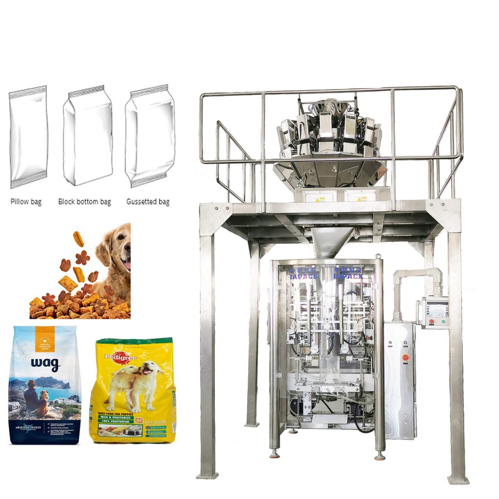 Diese Maschineneinheit besteht aus einer automatischen vertikalen Verpackungsmaschine VFFS520, einer Mehrkopfwaage ZR14-1.6L und einem Becherwerk DT5. Es kann Funktionen der Materialzuführung, des Wiegens, der Beutelherstellung, des Füllens, Verpackens, Druckens, Schneidens usw. automatisch realisieren.