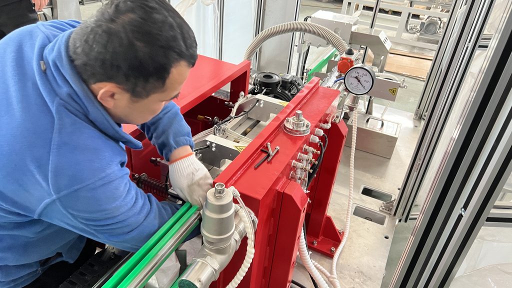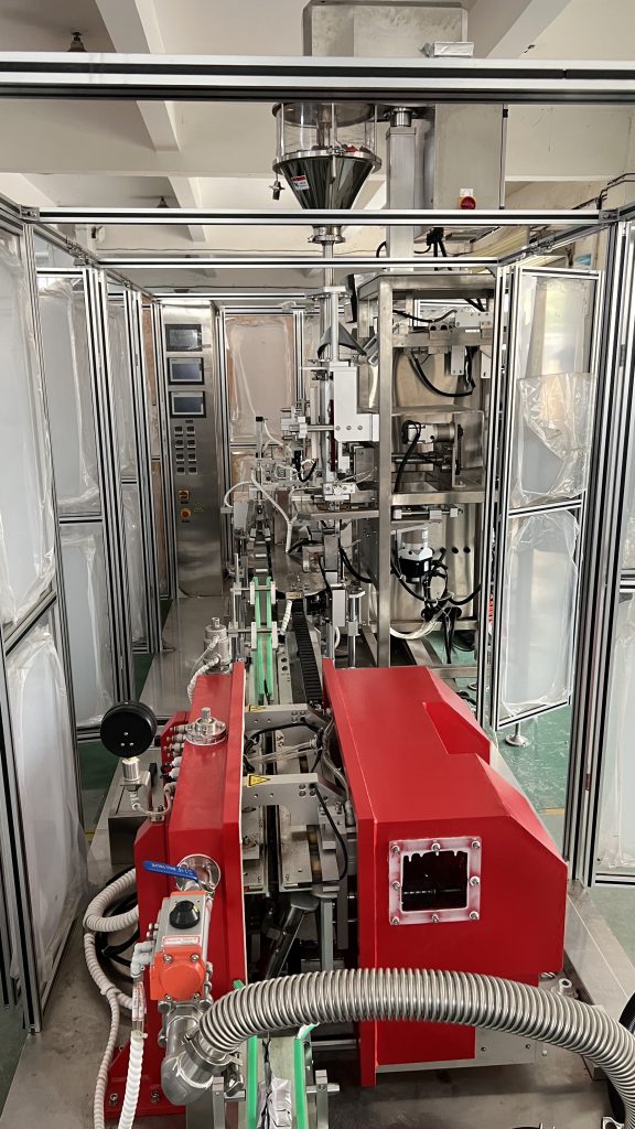 Unser Kunde aus dem Iran hatte einen Satz automatische Ziegel-Vakuumbeutelform-Füllverpackungsmaschine für 250-Gramm-Kaffeepulver bestellt. Und folgen Sie der Kundenanforderung, wir hatten die Vakuumkammer als Warnung in roter Farbe lackiert.