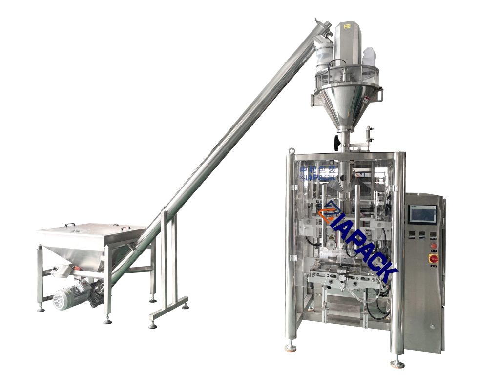 Schneckenfüller Maschine Milchpulver kleine vertikale Form füllen Siegelmaschine wird hauptsächlich für die Verpackung Pulver und Mehl Produkte, wie Ernährung Pulver, Babynahrung, Sesampaste, Salz, Zucker, Mehl, Stärke, Aromen, Milchpulver, Eiweißpulver, etc. verwendet