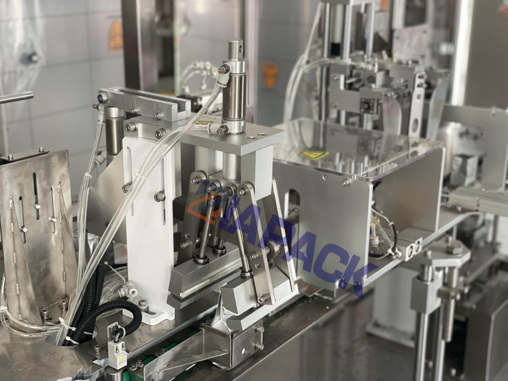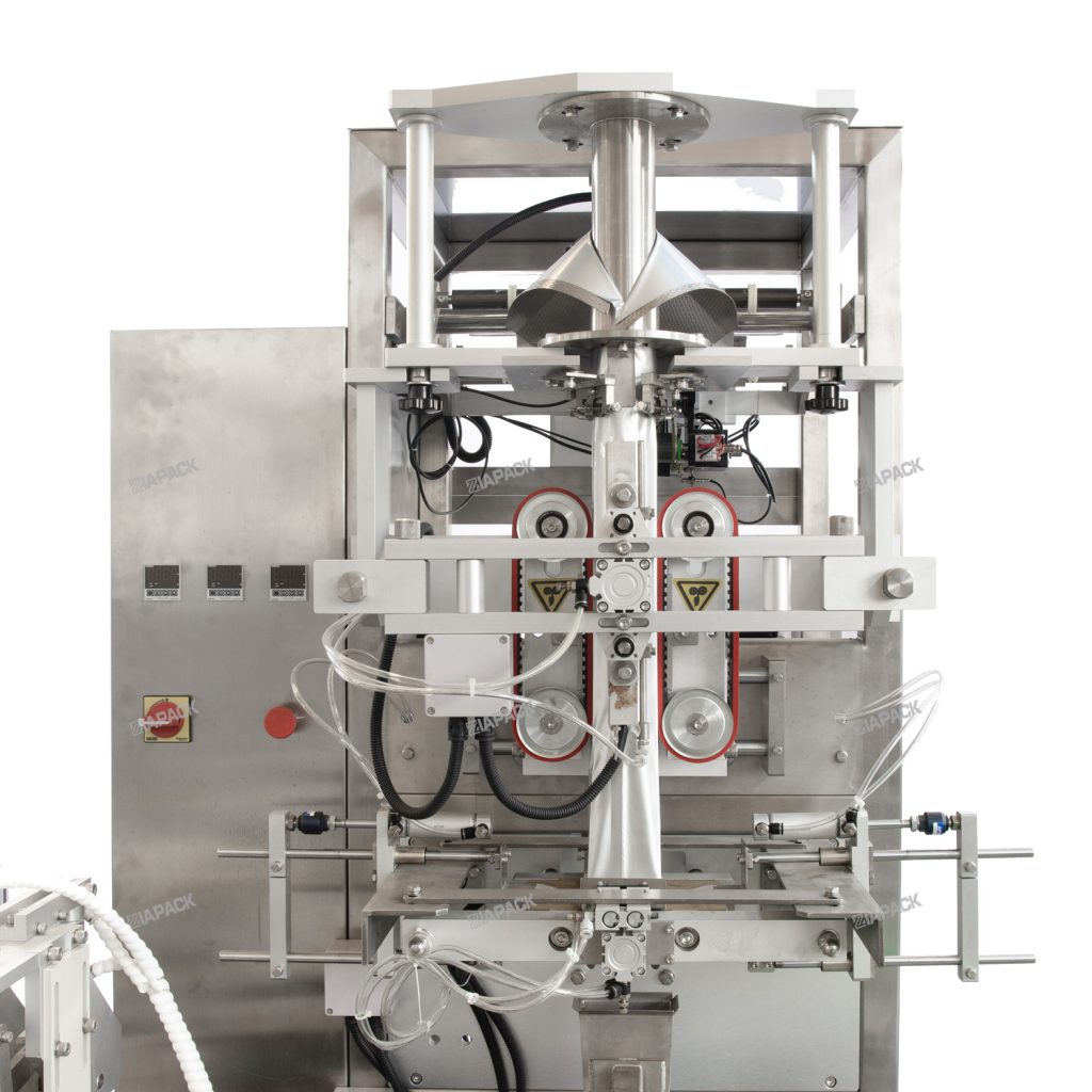 Diese Maschine umfasst einen Satz Vakuumaufzug, einen Satz ZL520 vertikale Beutelherstellungs-, Verpackungs- und Verschließmaschine, einen Satz ZLC4-2000 Doppeleimerwaage und einen Satz ZL-100V Eine Vakuumkammer-Verpackungsmaschine. Diese Maschine wird häufig zum Verpacken von Lebensmitteln, Apotheken, Chemikalien und verwendet anderes Produkt in Pulverform oder kleinem Granulat. Wie Kaffeepulver, Hefepulver, Weizenmehl usw. Die gesamte Maschine pumpt im Inneren, um das Produkt zu saugen. Der Vakuumgrad ist sehr hoch und die Verpackungsgeschwindigkeit ist sehr hoch. Sie kann 8 Beutel/Minute erreichen. Das fertige Produkt ist sehr schön und hat eine lange Haltbarkeit.